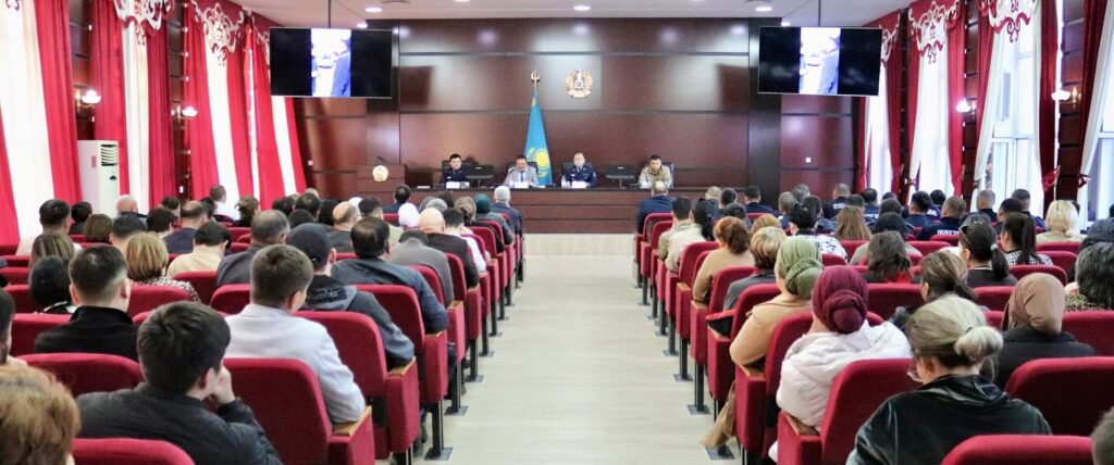 Жиынға Кентау қалалық полиция бөлімінің бастығы Ш. Әділханұлы қатысып, өз сөзінде құқық бұзушылықтың алдын алу бағытында бірлескен шаралардың маңызына тоқталды.