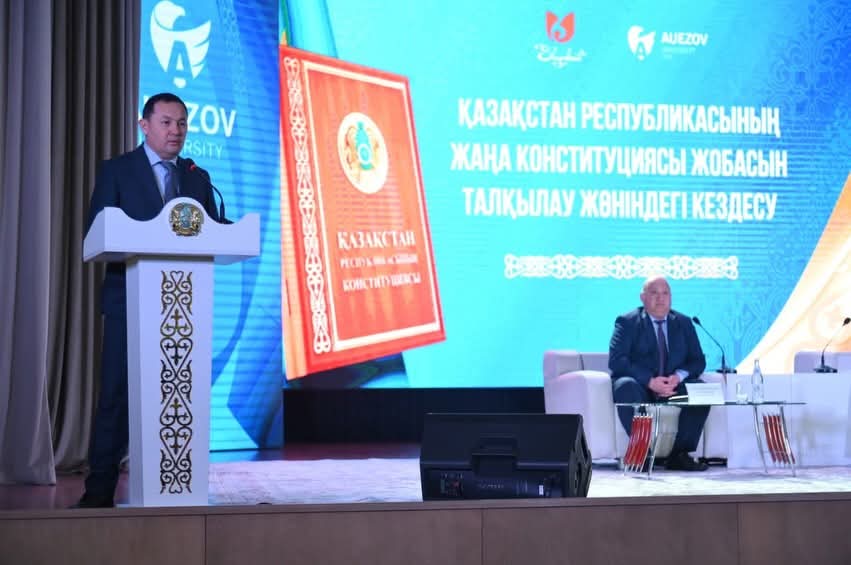 Шымкент қаласындағы М.Әуезов атындағы Оңтүстік Қазақстан университетінде Қазақстан Республикасының жаңа Конституциясы жобасын талқылау және түсіндіруге арналған кездесу өтті. Жиынға Шымкент қаласы әкімінің орынбасары Сәрсен Құранбек, университеттің әлеуметтік және тәрбие жұмысы жөніндегі проректоры Ғани Бесбаев, профессор-оқытушылар құрамы мен студент жастар қатысты.